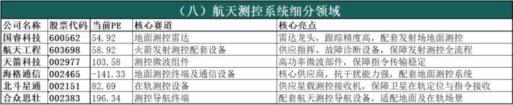 (八)航天测控系统细分领域