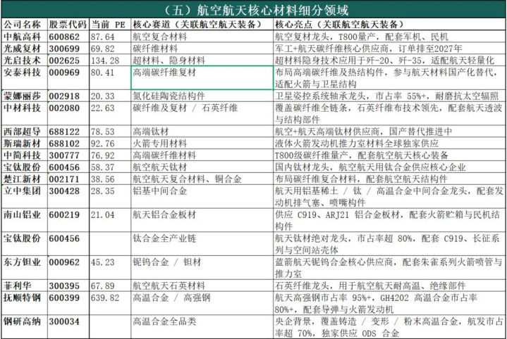 (五)航空航天核心材料细分领域