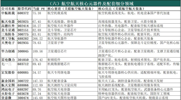 (六)航空航天核心元器件及配套细分领域