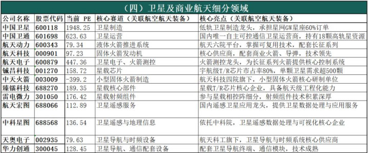 (四)卫星及商业航天细分领域